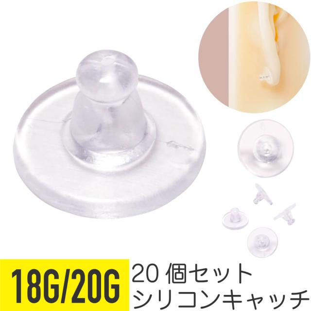 20個セット シリコン ピアス キャッチ 円盤型 18G 20G 樹脂 アクリル 透明 軟骨ピアス ボディピアス スタッドピアス スペア
