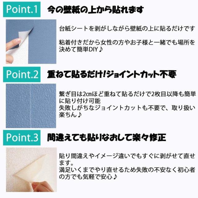 ■壁紙の上から貼ってはがせる壁紙シート。糊残りしないシールタイプのため賃貸もOK!