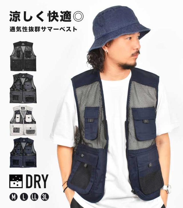 メッシュベスト 夏用 メンズ レディース 男女兼用 ベスト フィッシングベスト春夏 おしゃれ 作業着 多ポケット 大きいサイズ 吸汗速乾 通気性 涼しい 薄生地 多機能 軽量 M L LL 3L 釣り ガーデニング アウトドア キャンプ 作業用 現場作業 日曜大工 DIY ブラック ネイビー