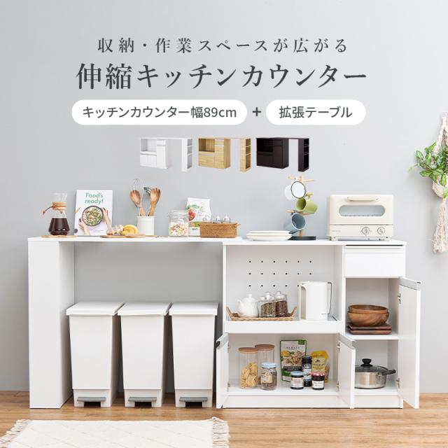 キッチンカウンター おしゃれ 収納 キッチン ラック キッチン収納棚 扉付き キッチン収納ラック 拡張テーブル ミドルタイプ フラット Flat コンセント付き 拡張 テーブル 後付け キッチンボード