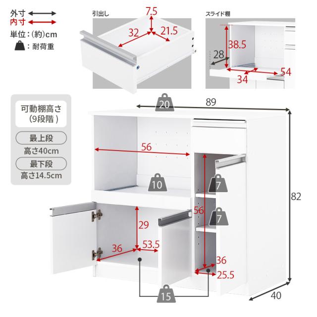 キッチンカウンター:幅89×奥行40×高さ82cm