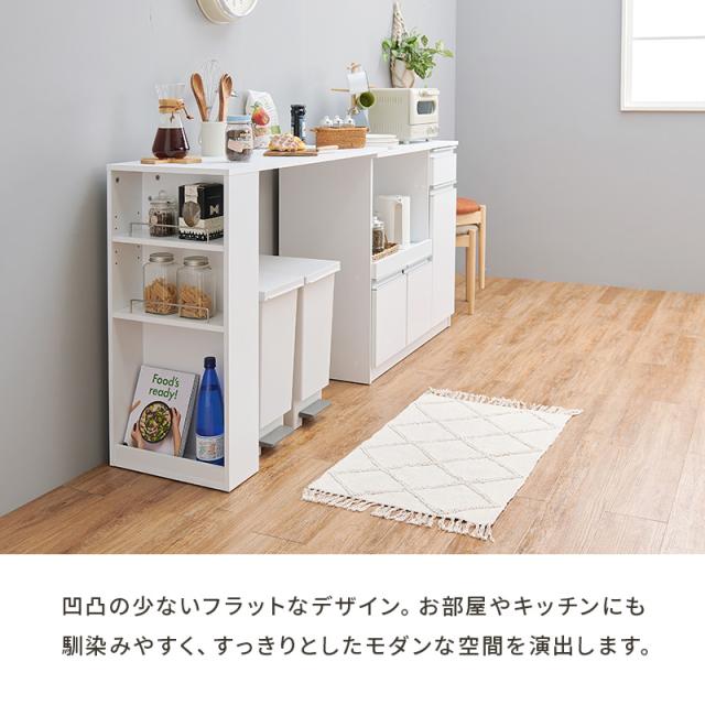 すっきりとしたデザインでどんなお部屋にも馴染みやすいキッチンカウンター「フラット」。