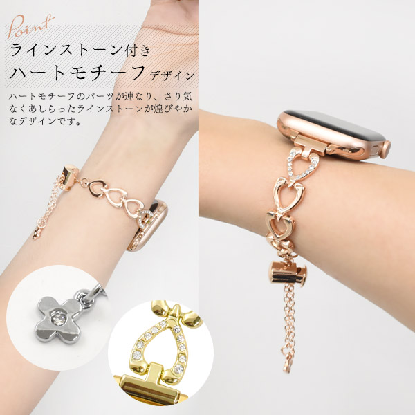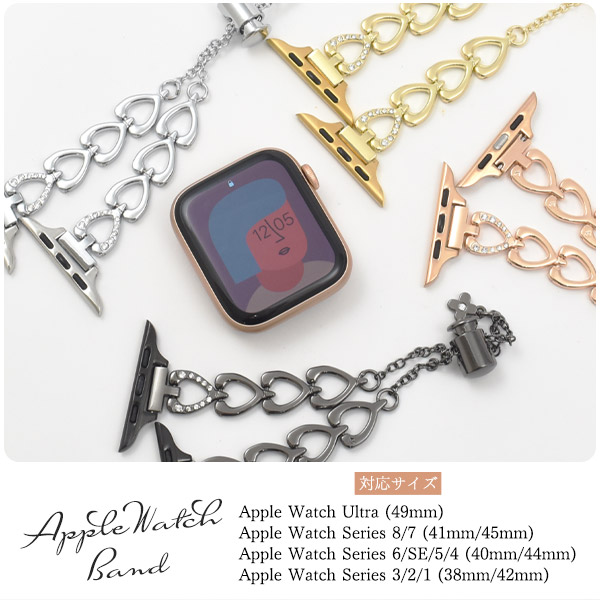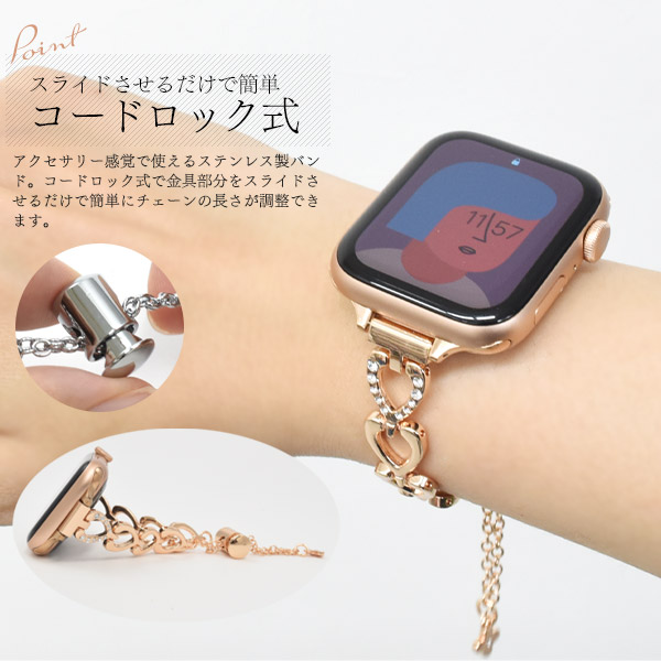 アップルウォッチ ハートモチーフデザイン コードロック式 バンド ハートチェーン風 ベルト おしゃれ 着せ替えバンド 女性向け 簡単調節 上品 Apple Watch かわいい 韓国風 スマートウォッチベルト スマートウオッチベルト Apple Watch7 se 交換用バンド ポイント消化
