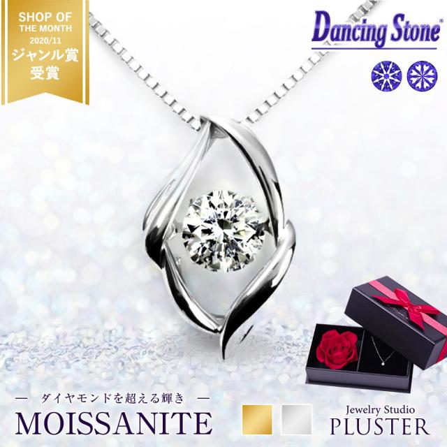 モアサナイト ダンシングストーン ネックレス レディース 一粒 プラチナ ゴールド 仕上げ 0.5ct相当 ダンシング エレガント 金属アレルギー ニッケルフリー シルバー シンプル ペンダント 可愛い ジュエリー アクセサリー 誕生日 クリスマス プレゼント 女性 ギフト