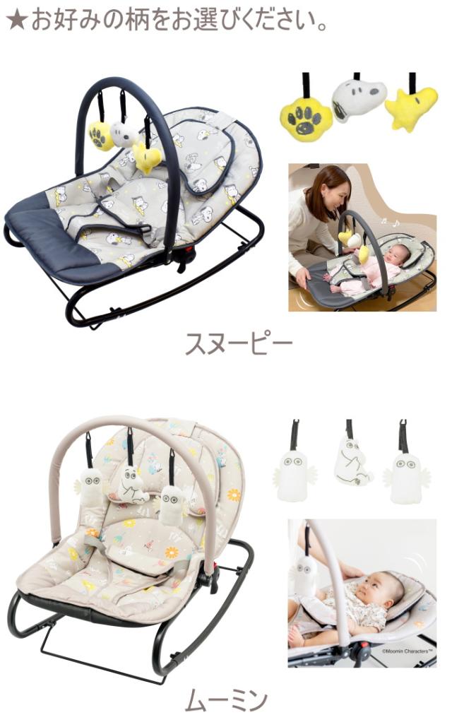 ベビーバウンサー 送料無料 ベビー 赤ちゃん 幼児 男の子 女の子 スヌーピー SNOOPY ムーミン MOOMIN キャラクター セーフティ セイフティー セイフティーグッズ バウンサー ベッド チェア クッション リクライニング付き 3点式股ベルト おもちゃ付き 永和 eiwa