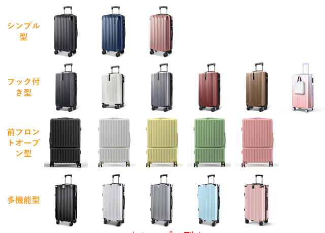 ?? 調整可能キャリバー・隠しフック・USB充電口・TSAロック:スマホ充電や小物掛けに便利。