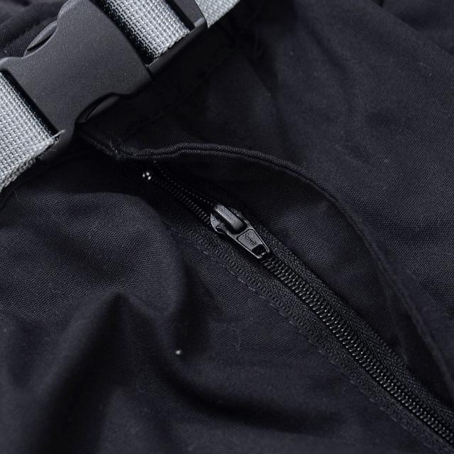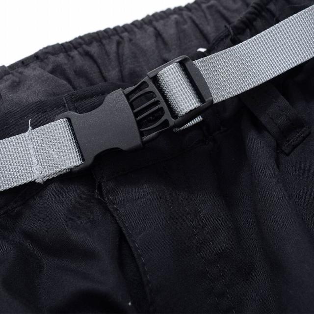 ウエストゴムはゴム仕様で、片手でも調節可能なウェビングベルトを装備。