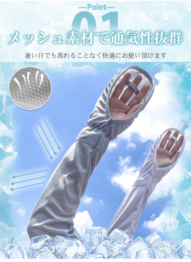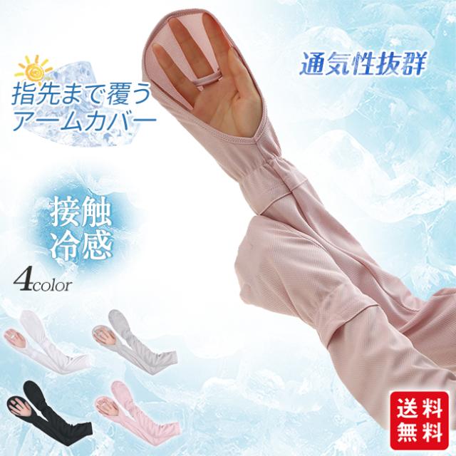 【2点15%OFF】アームカバー 日焼け防止 接触冷感 ひんやり 通気性抜群 指掛け 手袋 指先まで覆うア一ムカバ一 運転用 自転車用 通勤 通学 蒸れない