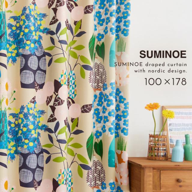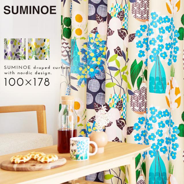 カーテン 遮光 100×178cm 北欧 花柄 遮光カーテン 1枚 フラワーポット ドレープ 1枚入 日本製 洗える おしゃれ 形状記憶加工 スミノエ SUMINOE DESIGN LIFE メーカー直送