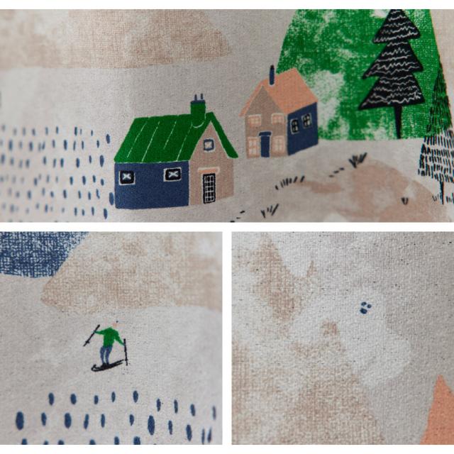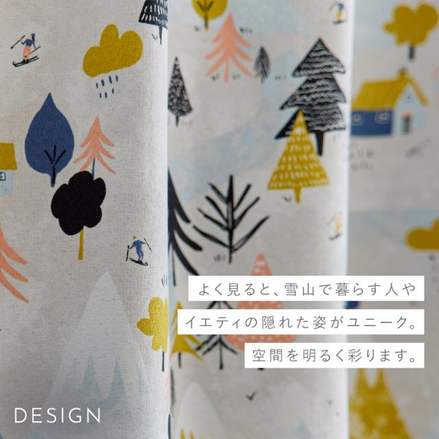雪山で暮らす人やイエティがかくれている、ユニークで楽しいドレープカーテン。
