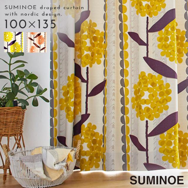 カーテン 遮光 100×135cm 北欧 花柄 遮光カーテン 1枚 ケイランサス ドレープ 1枚入 日本製 洗える おしゃれ 形状記憶加工 スミノエ SUMINOE DESIGN LIFE メーカー直送
