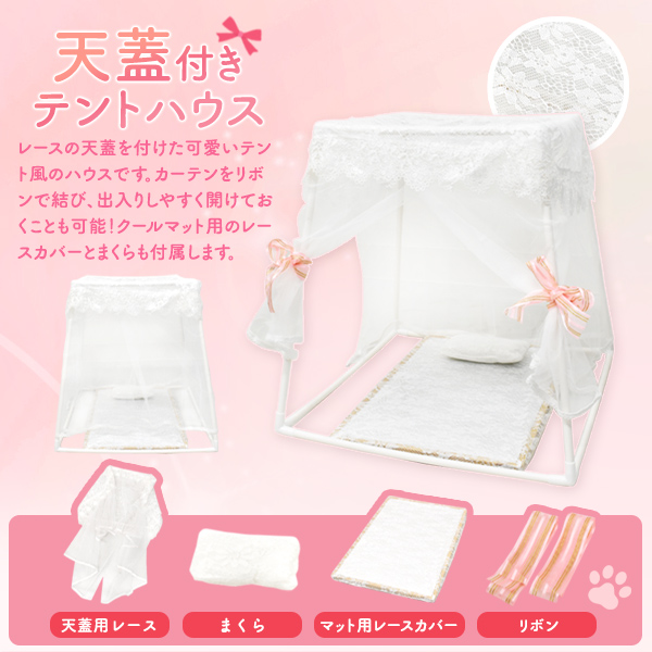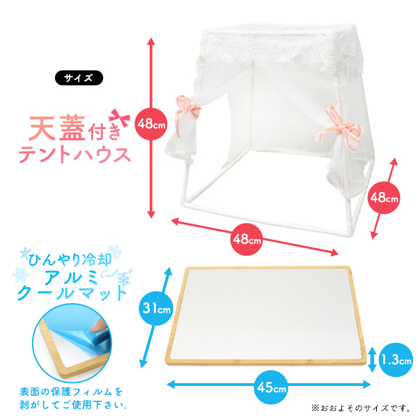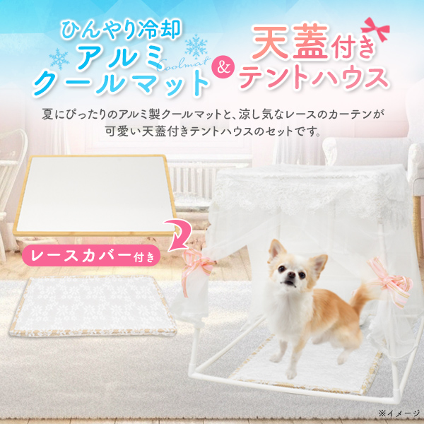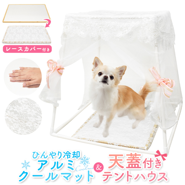 テントハウス 天蓋付き 夏用 ペットハウス ひんやり アルミクールマット付属 省エネ エコ 節電 冷やし過ぎない 体に優しい クールマット ペット用 冷却マット 暑さ対策 冷感 ひんやりマット 涼夏 涼感 犬 猫 熱中症 小型犬 中型犬 クール ベッド 寝床 お昼寝 快眠