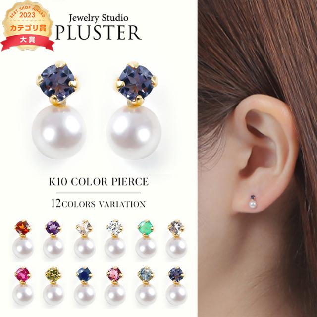 色鮮やかに輝く 誕生石ピアス 。淡水パールとの組み合わせは、華やかで、お守りとして身につけても。誕生日のギフトや、記念日の贈り物に。10金素材で金属アレルギーに対応しているので、お肌に優しく安心です。