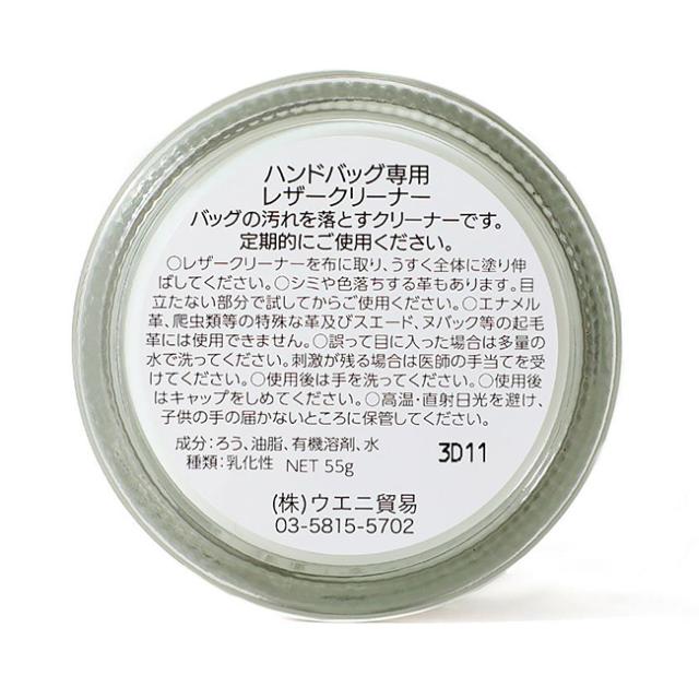 | ブランド |ペッレモルビダ / PELLE MORBIDA シリーズ |ケアアイテム / Care Item 品番 |pmp-cs005 形状 |ケア用品 / ケアクリーナー |レザークリーナー 容量 |約 55g 成分 |ろう / 油脂 / 水 / 有機溶剤 種類 |乳化性 色名 |ニュートラル 生産国 |日本 / JAPAN ATTENTION 使用上の注意 ・シミや色落ちする場合がございますので、目立たない部分で試してからご使用ください。 スエード、ヌバック等の起毛革、エナメル革、トカゲ・ワニ革、その他特殊な革や布製品にはご使用できません。 |