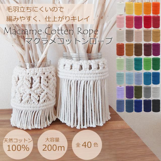 コースター、タペストリー、プラントハンガー、アクセサリーやバッグまで、様々な用途に最適な3mm幅。マクラメ初めてさんから上級者の方まで、幅広い方にお使いいただけます。