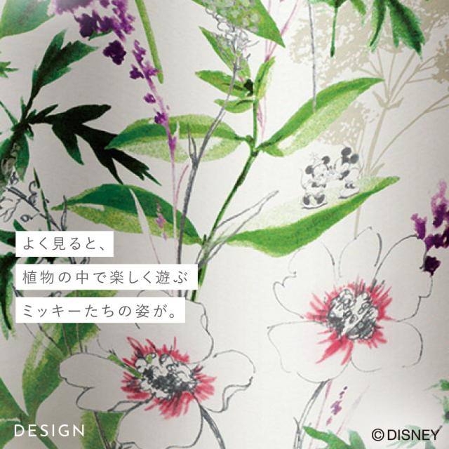 野原に咲くハーブなどを繊細なタッチで表現した、ミッキーの大人可愛いドレープカーテン。よく見るとミッキーとミニーが隠れています。