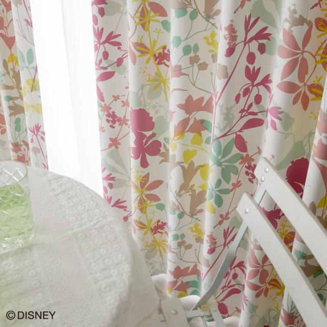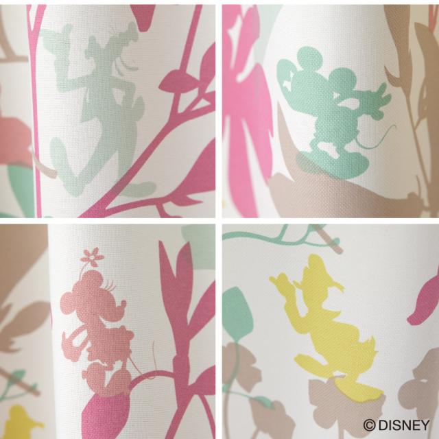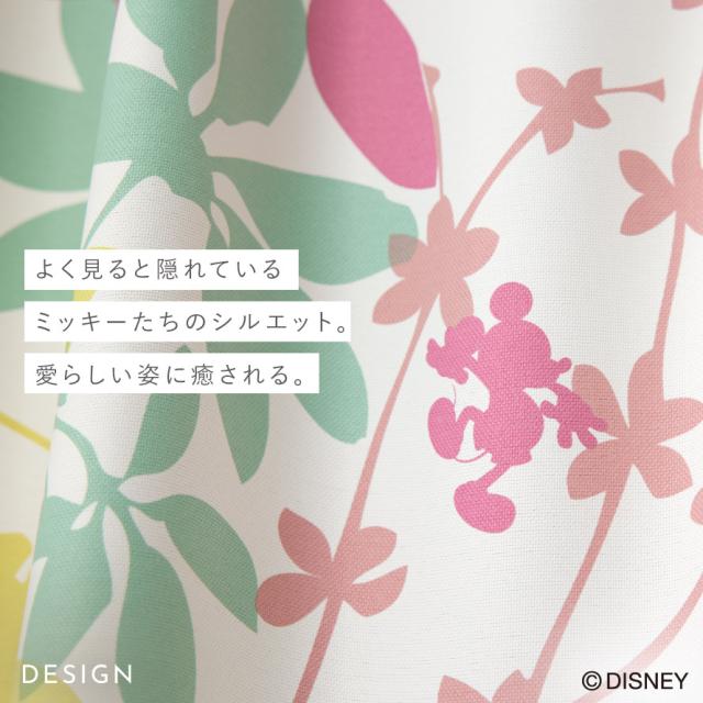 カラフルな植物柄が爽やか。透明感あるミッキーのドレープカーテン。隠れているミッキーマウスのシルエットに癒されます。