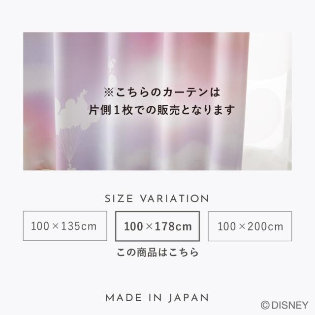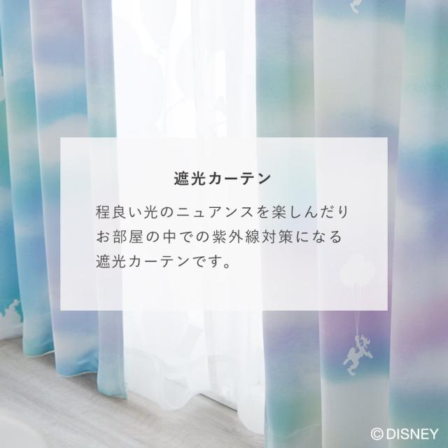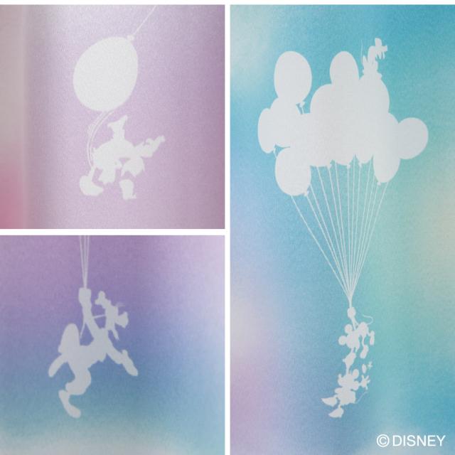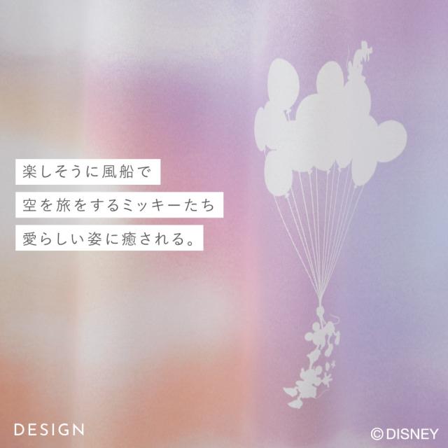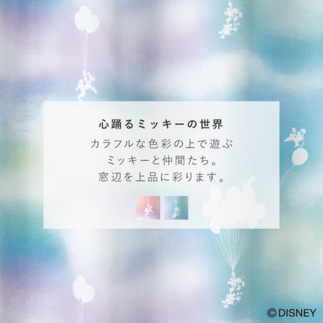 幻想的なグラデーションが美しい、ミッキーの大人可愛いドレープカーテン。ミッキーマウスと仲間たちが楽しそうに風船で空を旅している姿に癒されます。