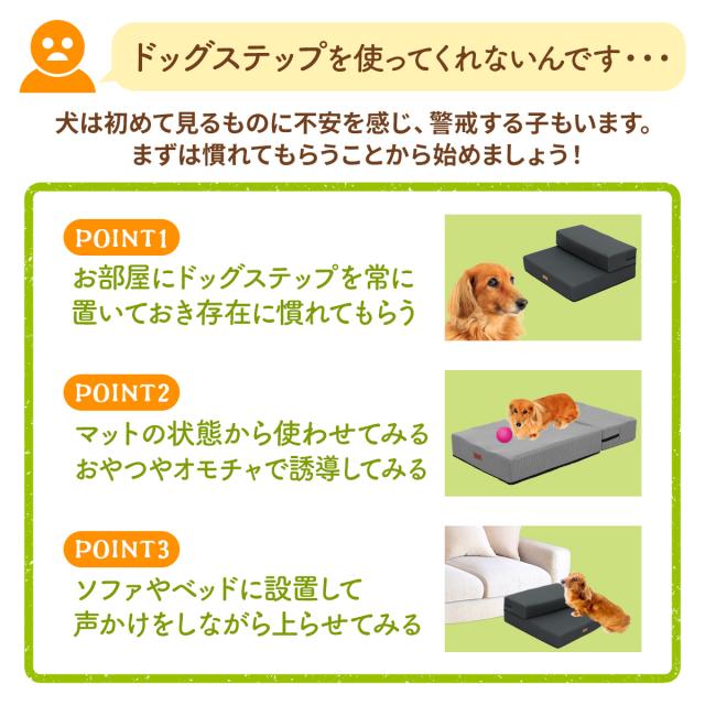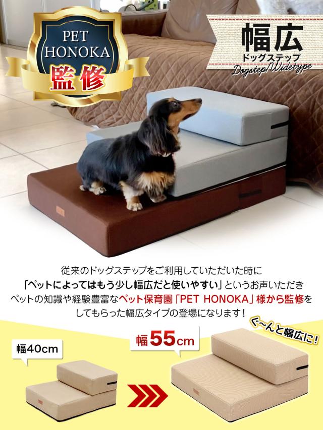 ペット保育園&ホテル監修!段差が上れない小型・中型犬や老犬のためのドッグステップ幅広タイプです。ペットの腰や足の負担をサポート。ソファやベッドの横において愛犬のケガ防止に。