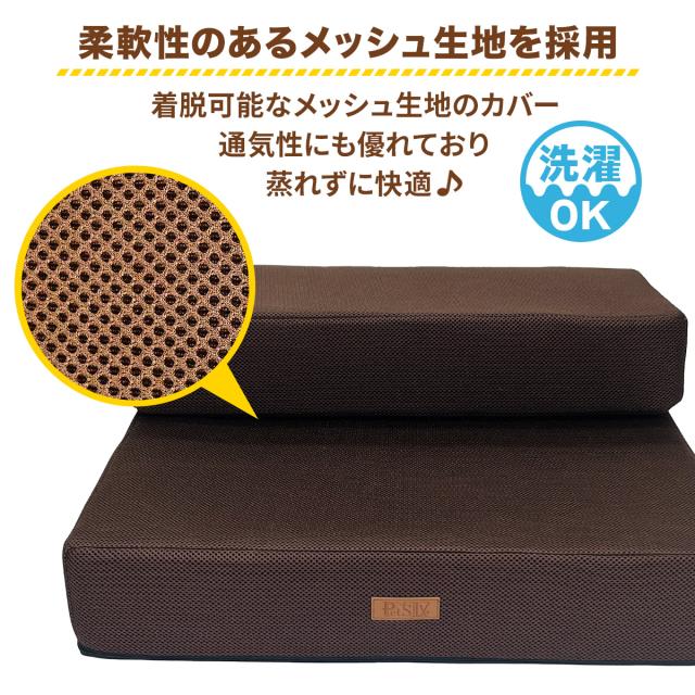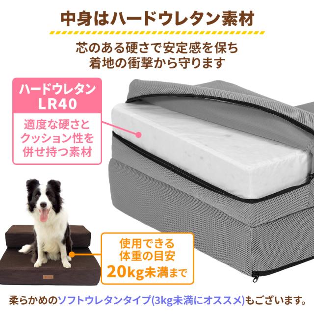 【ペット保育園&ホテル監修】 ドッグステップ 幅広 犬 階段 ペット 犬用 ステップ 2段 通気性 おしゃれ 送料無料 メッシュ生地 硬めタイプ