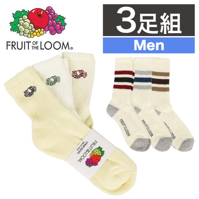 【3足セット】FRUIT OF THE LOOM ロゴ ソックス メンズ フルーツオブザルーム 靴下 クルー ショート クォーター スリークォータース リブ カジュアル 刺繍
