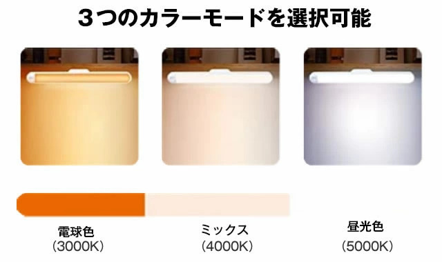 搭載しているLEDは、暖か味のある電球色、ミックス、青みのかかった昼白色の3種類の色温度で発光。 気分でカラーを変えられます。LED寿命も約10,000時間と長持ち。 |