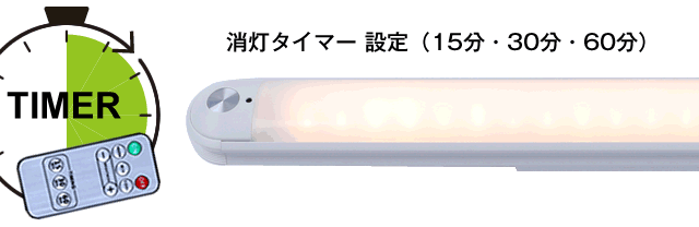 付属リモコンを使えば、消灯タイマーを3段階(15分・30分・60分)で設定。 |