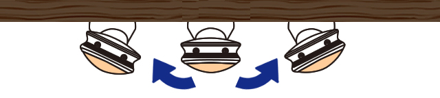 | ホルダーは左右約45度に角度を調整できます。直接光を避け、間接照明としても使うことができます。 |