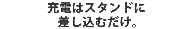 付属の充電スタンドに差し込めば、本体充電がスタートします。 |