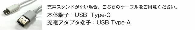 | 充電スタンドがない場所でも、お持ちのUSBケーブルがあれば、点灯・充電できます。 |