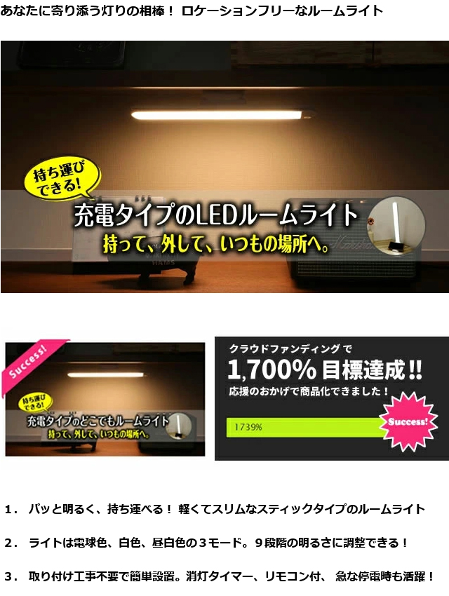 「1つのライトをあらゆる場所に」を実現したシンプルで多機能なポータブル ルームライト |