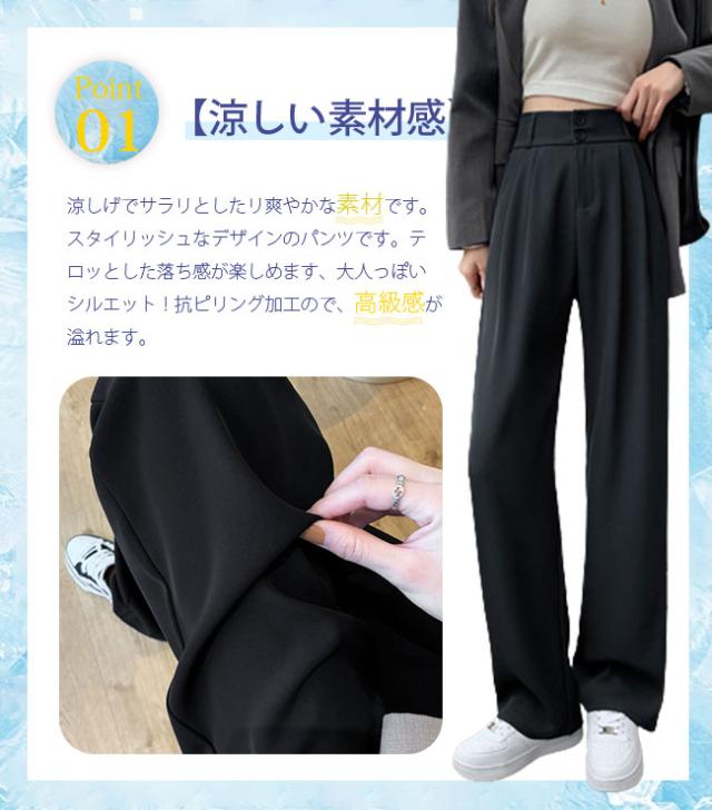 夏新作 ひんやりパンツ ロングパンツ レディース アイスシルクワイドパンツ スーツパンツ 接触涼感 ストンとした落ち感 サルエルパンツ 知的 おしゃれ 春 夏 ハイウエスト オフィス 通勤 OL お出掛け