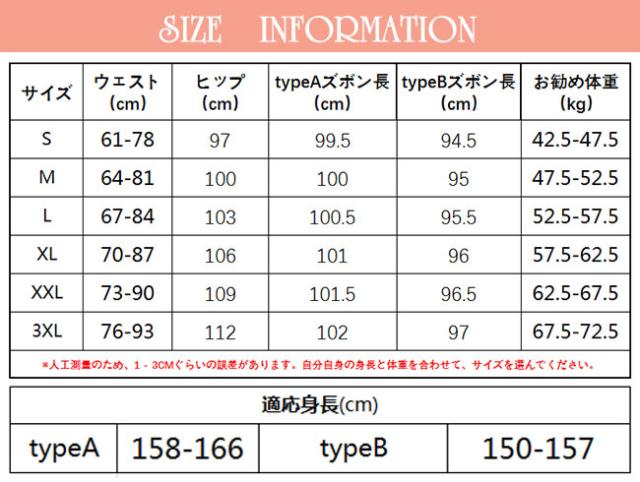 タイプAとタイプBのズボン長は異なります。具体的にはサイズ表記により選んでください。