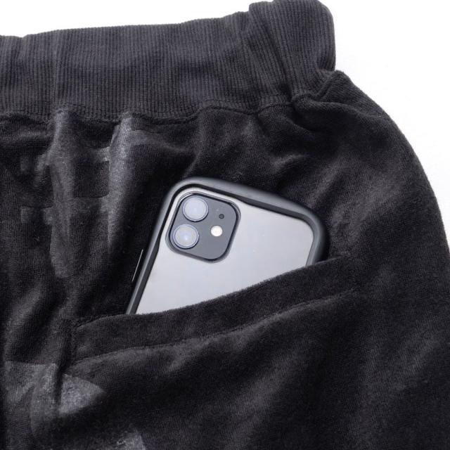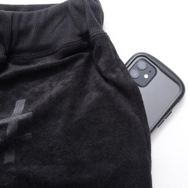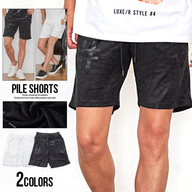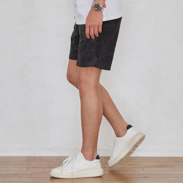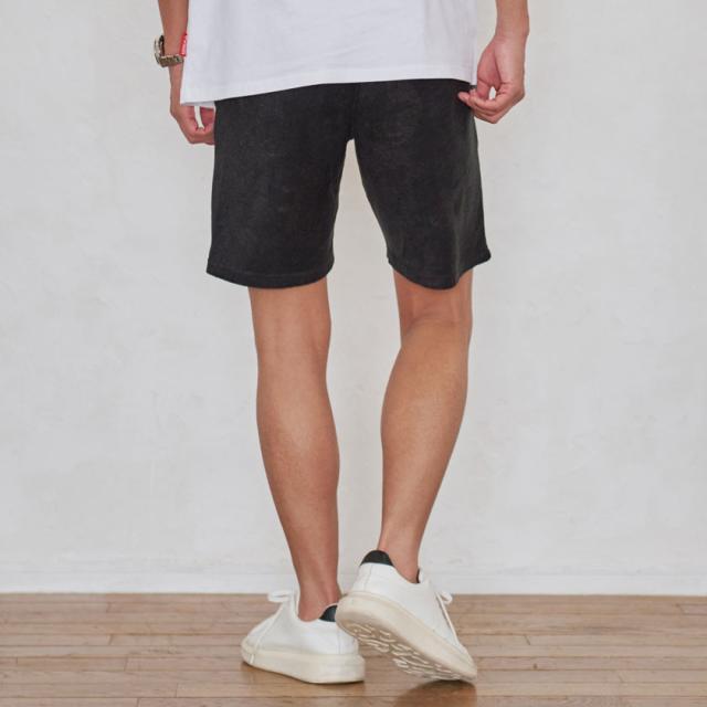 型押し加工が施されたパイル生地のショーツ。