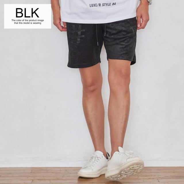 セール SALE ハーフパンツ メンズ おしゃれ ショーツ ショートパンツ 短パン 型押し エンボス パイル 生地 タオル生地 膝上 シンプル 大人 ホワイト ブラック 白 黒 カジュアル CavariA 服 父の日 春 夏 春夏 春服 夏服 ファッション メンズファッション 即日発送 [CANG23-31]