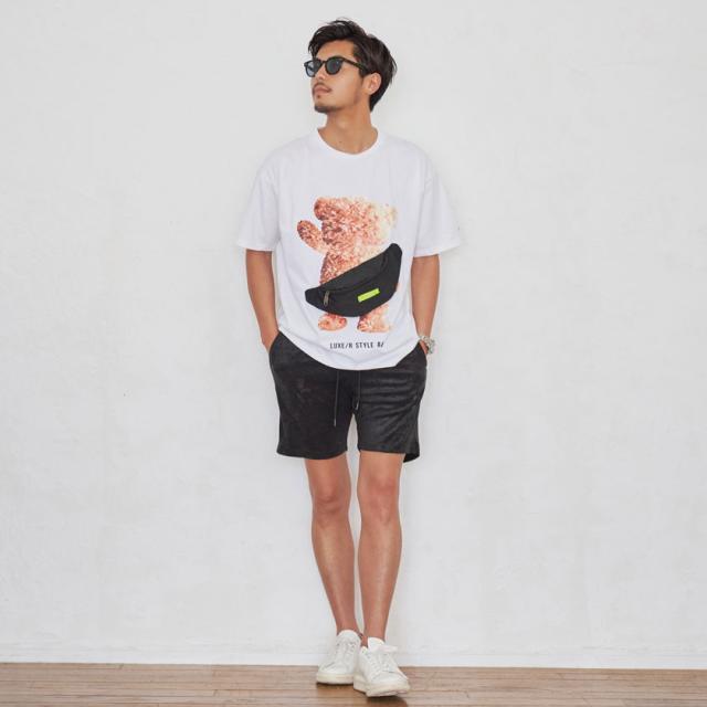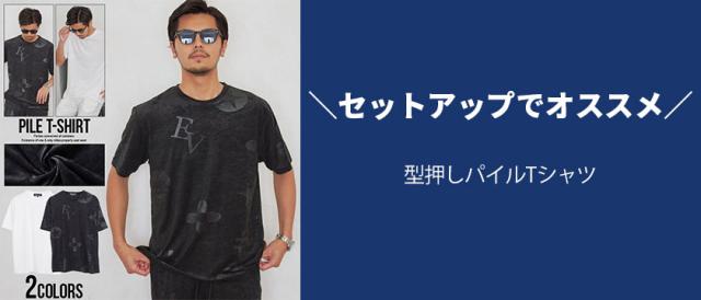 同素材の型押しパイルTシャツとのセットアップでのご着用もオススメです。