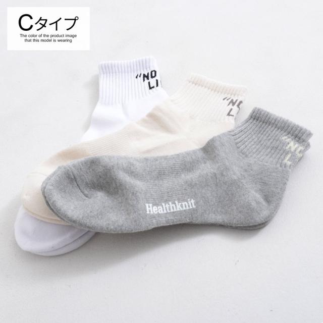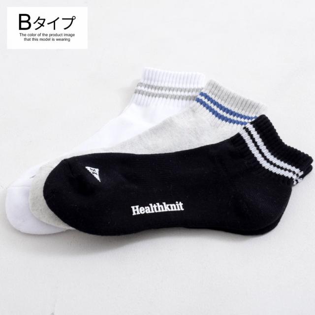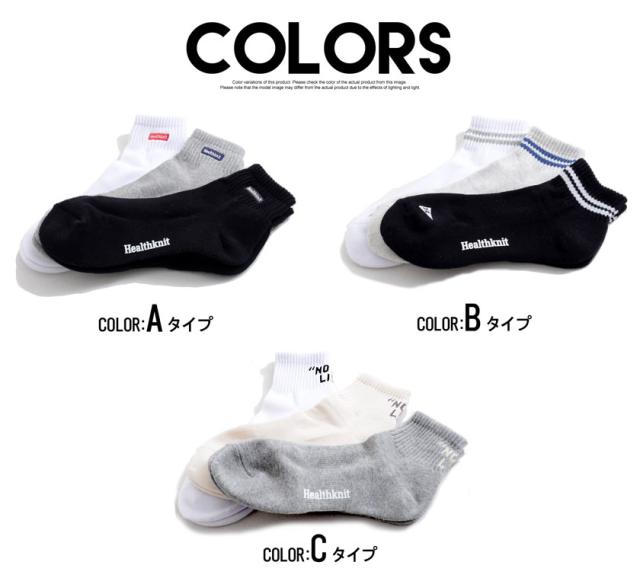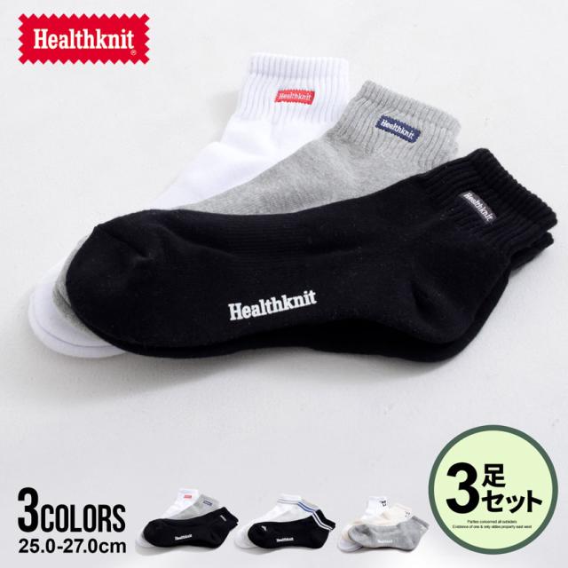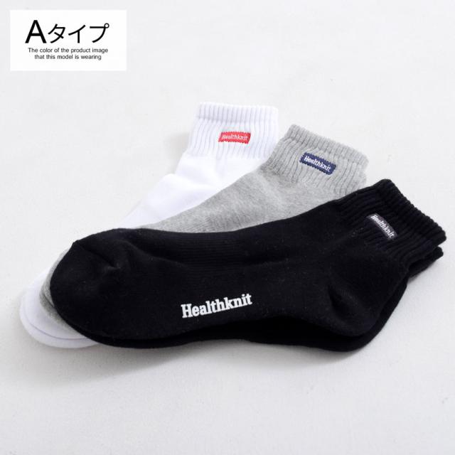 Healthknit ヘルスニット 靴下 メンズ 3足セット 3Pセット 3枚組 ソックス くつした アンクルソックス ミドル丈ソックス おしゃれ プリント ロゴ ワンポイント カジュアル 25.0cm-27.0cm 春 夏 秋 冬 男 男性 父の日 即日発送 [HKAD23-SET01]