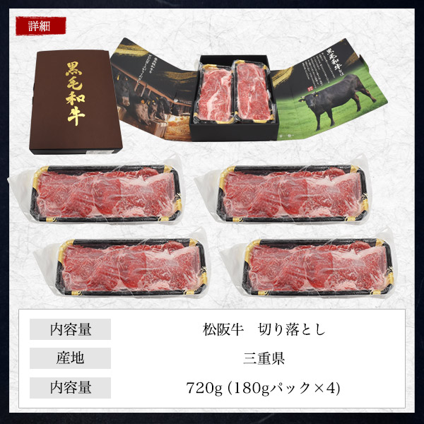 肉 ギフト A5 松阪牛 切り落とし 720g (180g×4パック) 牛肉 お肉 スライス 720グラム 最高級 国産 ブランド牛 薄切り スライス肉 松坂牛 A5ランク 2025年 お歳暮 炒め物 牛丼 肉じゃが カレー 煮込み料理 おいしい ギフトボックス クール冷凍便 不揃い 送料無料