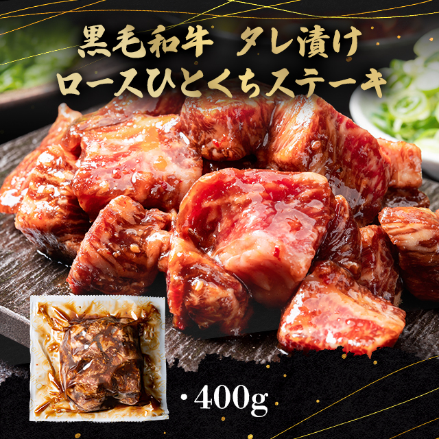 The Oniku 黒毛和牛 タレ漬けロースひとくちステーキ 400g お試し お取り寄せグルメ ロース ステーキ 肉 お肉 牛肉 BBQ