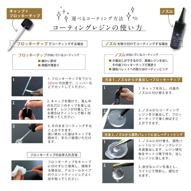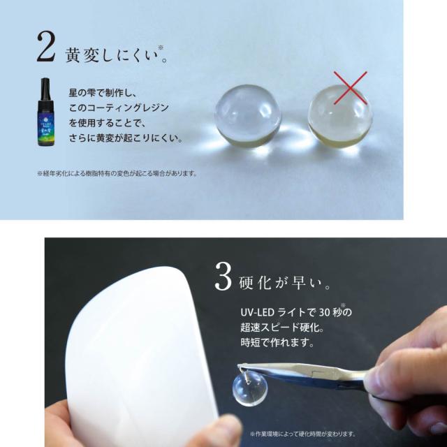 ■UV-LEDレジン月の雫に塗布する場合、月の雫特有の表面硬度のため、皮膜が剥がれる場合があります。塗布する前に#600〜#1000のやすりで表面に傷を付けてから塗布することをおすすめします。