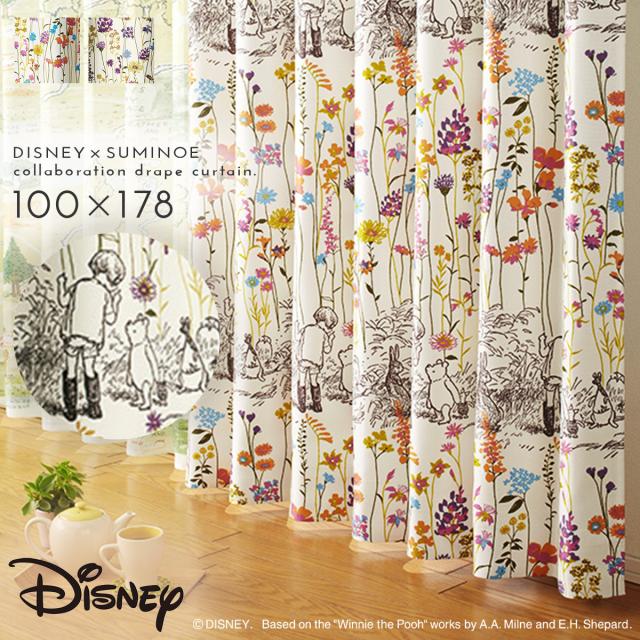 プーさん カーテン ディズニー 遮光 100×178cm 遮光カーテン 北欧 インテリア プー ガーデンプレイス ドレープ 1枚 日本製 洗える おしゃれ 形状記憶加工 スミノエ SUMINOE メーカー直送