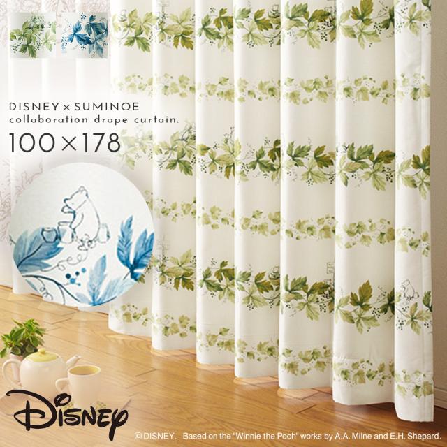 プーさん カーテン ディズニー 遮光 100×178cm 遮光カーテン 北欧 インテリア プー リース ドレープ 1枚 日本製 洗える おしゃれ 形状記憶加工 スミノエ SUMINOE メーカー直送