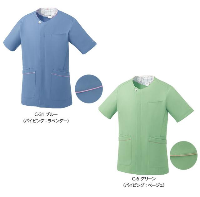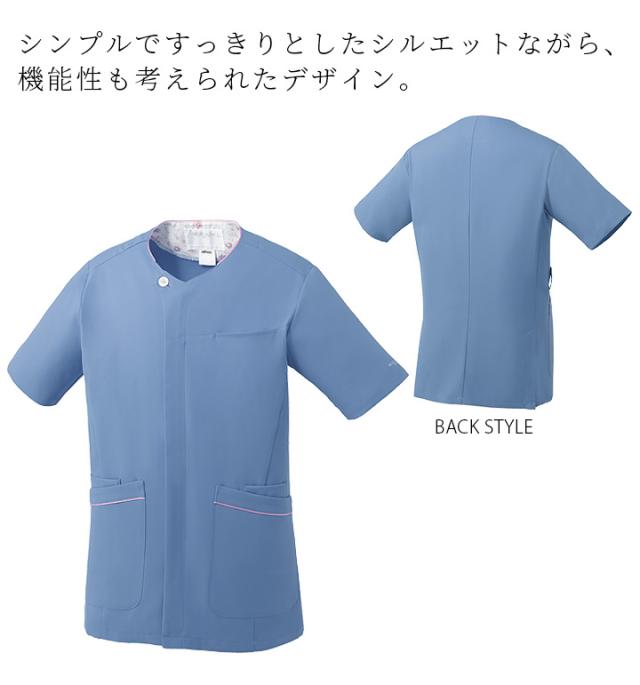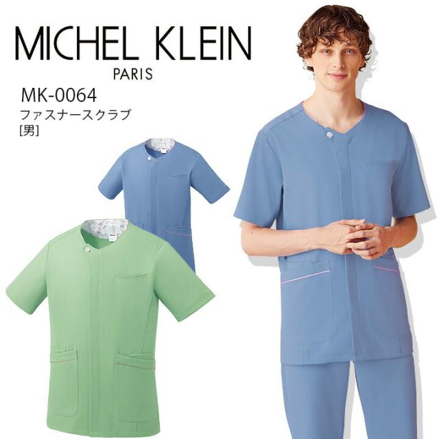 スクラブ 白衣 ミッシェルクラン ナース服 MK-0064 半袖 透け防止 イージーケア ストレッチ 制菌加工 男性 メンズ エステ服 メディカルウェア 医師 医療用白衣 術衣 MICHEL KLEIN