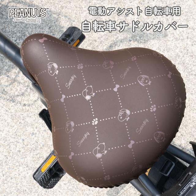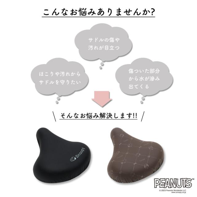 サドルカバー 大型 電動自転車 スヌーピー 大型サドルカバー BIG ビッグ 防水 電動アシスト ワンポイント ステッチ ブラック ブラウン シンプル 黒 茶 キズ 汚れ 防止 大人 グッズ キャラクター SNOOPY ピーナッツ PEANUTS