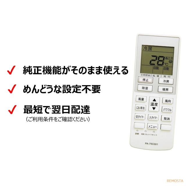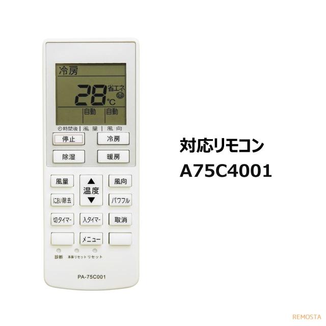 パナソニック エアコン リモコン A75C4001 CS-222CF/CS-222CFR/CS-22NFB/CS-252CF/CS-282CF/CS-282CFR/CS-28NFA/CS-402CF2 CWA75C4002X 代用リモコン REMOSTA