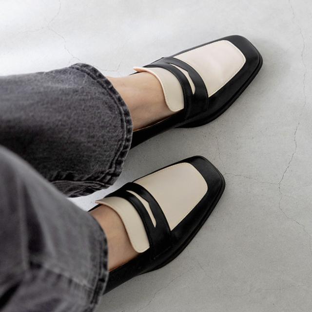 すっとつま先にかけて伸びるかっちりめのスクエアトゥが美しい1足。
