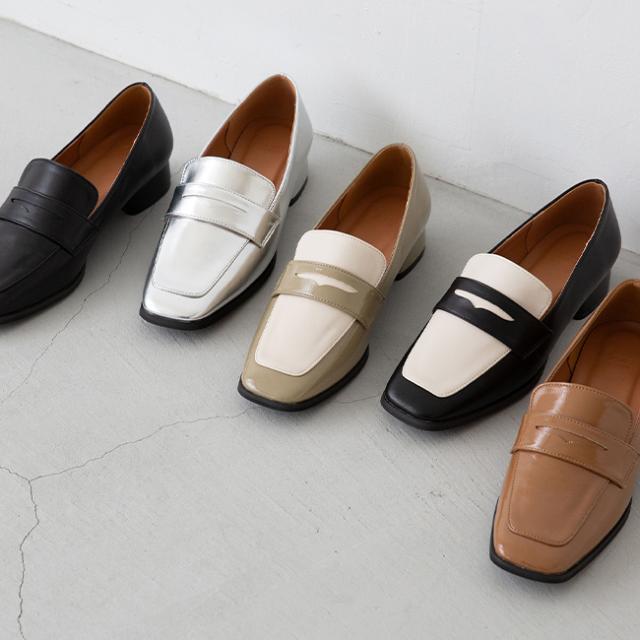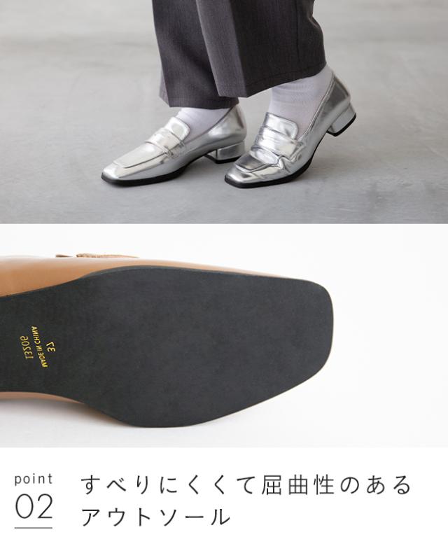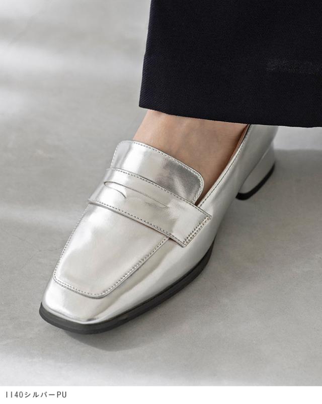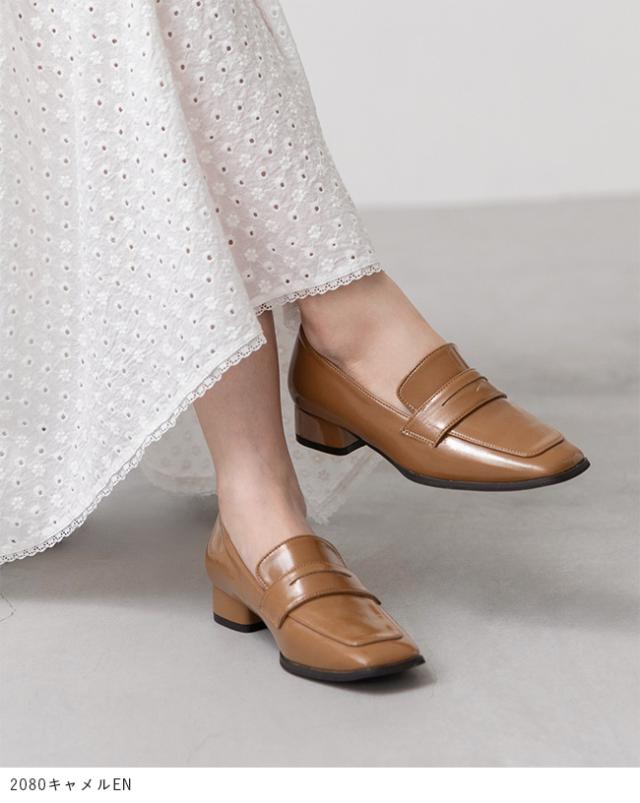 ローファー レディース 3cmヒール ミドルヒール 痛くない 歩きやすい スクエアトゥ コインローファー 甲深 送料無料