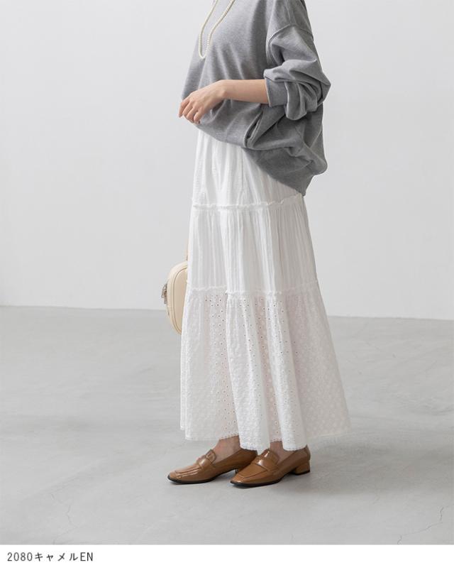 シルエットを邪魔しないちょうどいい太さのヒールは、高さが3cmと低いので安定感があり歩きやすい。