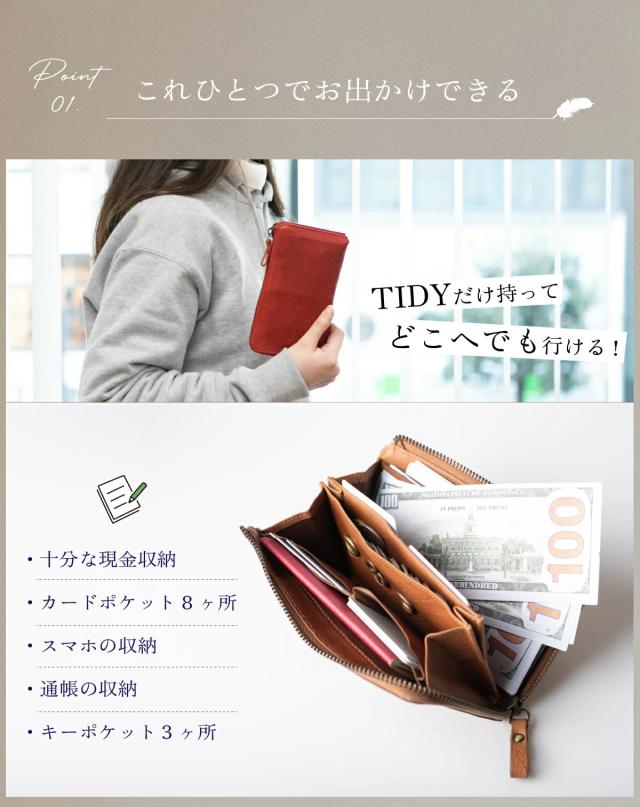 財布 レディース TIDY2.0 TIDY タイディ 長財布 上品 シンプル ソフト 大容量 l字ファスナー 小さめ スキミング防止 メンズ 本革 スリム お出かけ コンパクト プレゼント 女性 誕生日