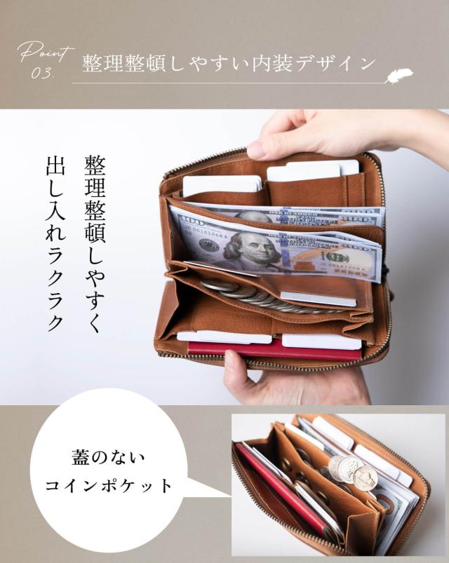 最大で紙幣50枚、カード24枚を収納できる。整理整頓がしやすく誰でも仕分け上手になれる。